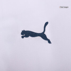 The new 2024-2025 football shirt blends OM's traditional white and sky blue hues with navy accents, creating a classic yet modern look. What sets the 24-25 home Marseille jersey apart are the distinctive crest and panels that contribute to Marseille jersey's uniqueness. Notably, the side and back panels of Marseille jersey showcase an abstract flag design, symbolizing the flags waving proudly in the stadium during each match. The motifs adorning the sides serve as a visual representation of the vibrant atmosphere created by the fans. A special touch is the "Portez" inscription on the collar, a heartfelt tribute to the supporters who are revered as the 12th player here at OM, embodying a spirit of unity and passion unlike any other.