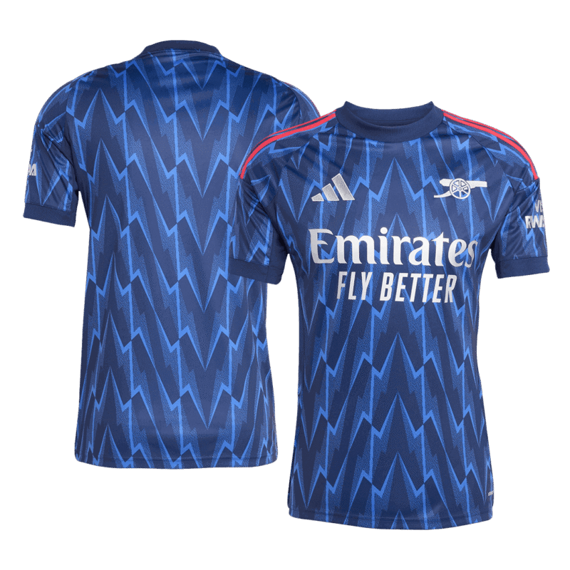 Le Arsenal away soccer jersey 2025/26 is here, and it's already making waves among Gunners fans worldwide. Inspired by the legendary 95-96 kit, this modern reinterpretation carries the lightning bolt motif in a bold new way. A dark navy base is electrified with striking royal blue graphics, making this shirt a must-have for loyal supporters.