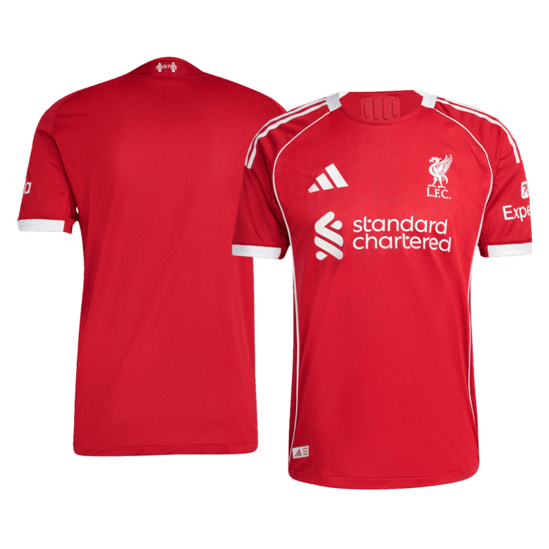 Step into Anfield tradition with the brand-new Liverpool home authentic soccer jersey 2025/26. The first kit of the renewed Adidas and Liverpool partnership, this shirt combines modern performance with classic club heritage. Designed in Strawberry Red with crisp white logos, the jersey pays tribute to Liverpool's 06/07 kit worn by legends like Steven Gerrard, Daniel Agger, and Xabi Alonso – now reimagined for today's fans.