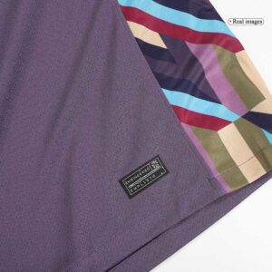 The new England away soccer kit Euro 2024 features a dark pale maroon with colorful side panels. There are seven different colours in the playful graphic side panels, with gold detailing on the brand and three Lions badge. The highlight of cheap England jersey EURO 2024 away is the multi-color design on both sides. There is a St. George's Cross on the inside of the collar of England jersey in the same color as the side stripes. Although England jerseys, England authentic jerseys, and England long sleeve jerseys are replica jerseys, these jerseys are almost exactly the same as those on the official website. The fabric of England jerseys, England authentic jerseys, and England long sleeve jerseys are skin-friendly, smooth, breathable and light.